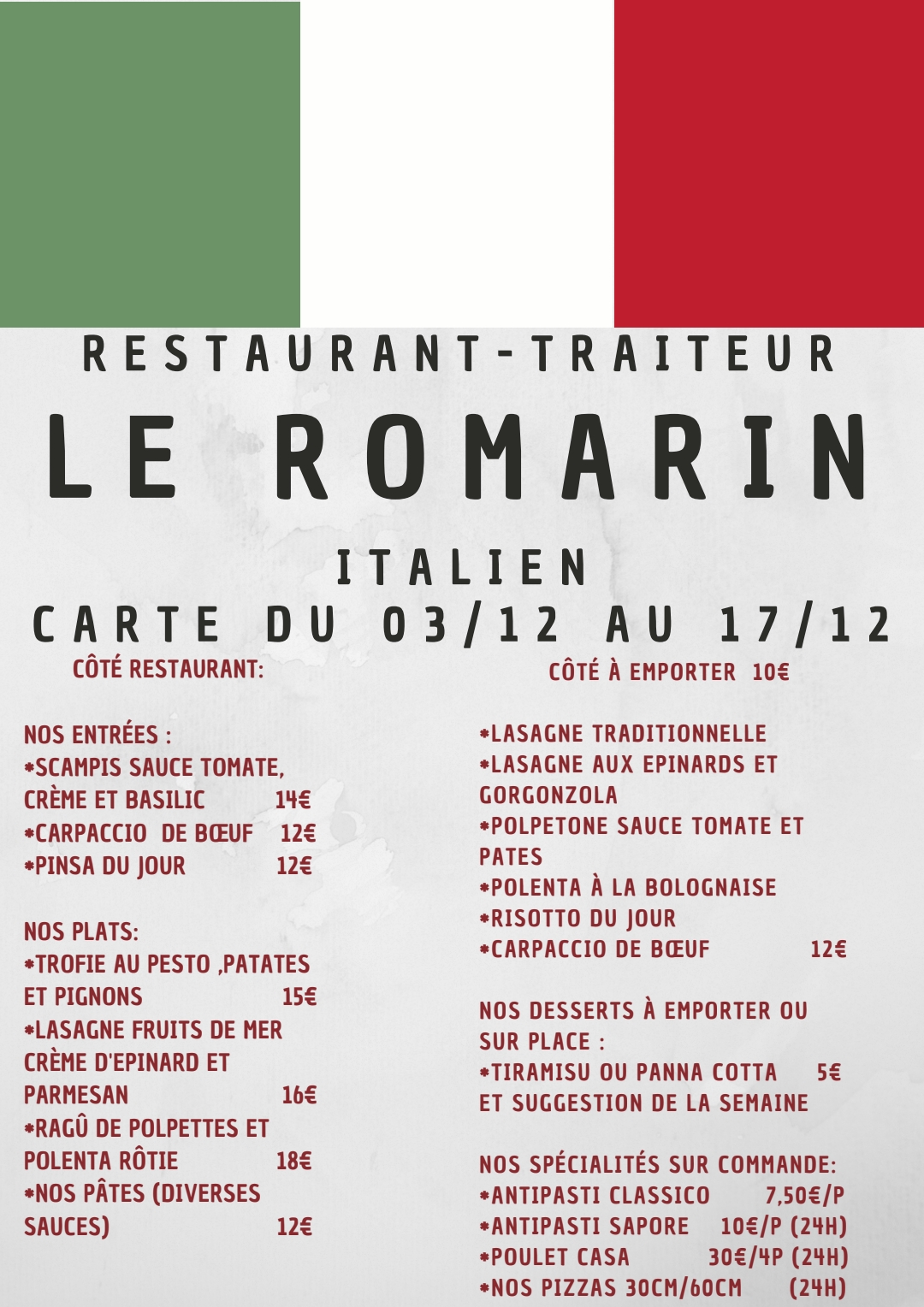 Prochaine soirée le samedi 13 décembre menu découverte à 35€/p