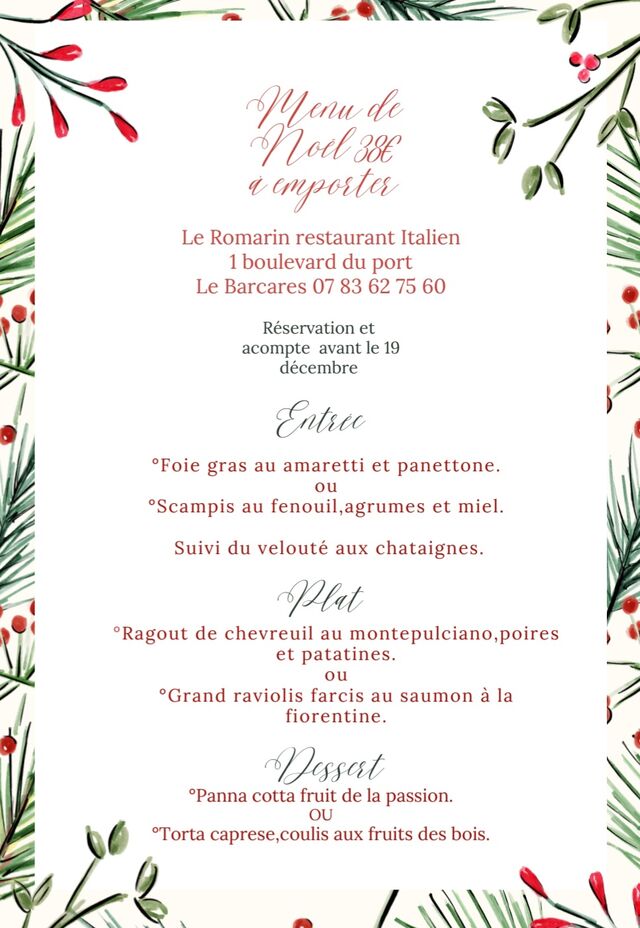 Prochaine soirée le samedi 13 décembre menu découverte à 35€/p